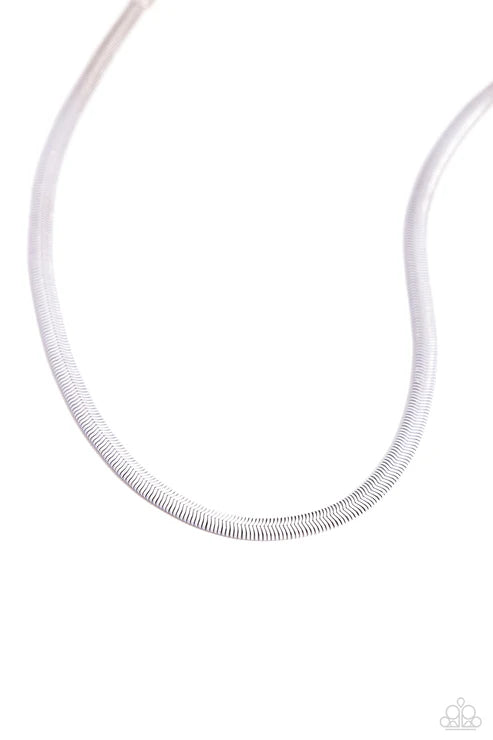 Featuring a spray paint effect, a silver snake chain slowly fades from silver to white as it loops around the neckline for a charismatically colorful display. Features an adjustable clasp closure.